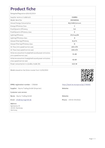 - High Energy Efficiency: CIARRA is committed to developing smarter, energy-saving appliances. CIARRA Class A+++ energy efficient cooker hood not only reduces your electricity bill by 80% every year but also brings you a high-quality ecological life.