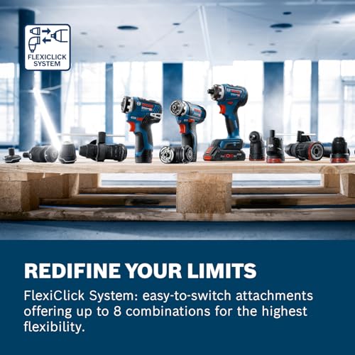 - Easy to operate: The Bosch FlexiClick adapters can be locked in 16 different positions (360°) without having to remove them from the cordless screwdriver