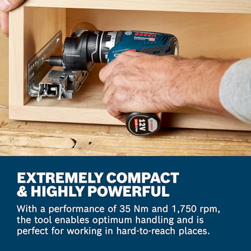 - Powerful and compact: The Bosch GSR 12V-35 FC Professional cordless drill/driver is extremely compact and offers impressive performance (35 Nm and 1750 rpm) for optimum handling in hard-to-reach areas