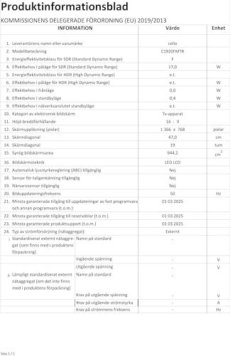 The USB input enables the recording of digital TV channels. A super slim and modern EASY TO USE 19″ HD Ready Digital TV with Freeview HD. Mains 240v. Pitch Perfect : with the Pitch Perfect speaker system by Cello for enhanced audio quality and unparalleled clarity in every scene.
