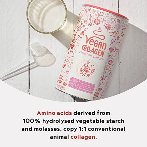 - ✦ VEGAN COLLAGEN FORMATION: Our Vegan Collagen Formation Support is biochemically almost identical to animal-derived collagen powder, but it is a purely plant-based supplement without raw ingredients from beef or pork which is often common within animal derived collagen powders. Versatile, just like animal-derived collagen powder: the powder is almost completely tasteless and can be used in a variety of ways, including cooking & baking but also simply mixed with water, juice or a protein shake.