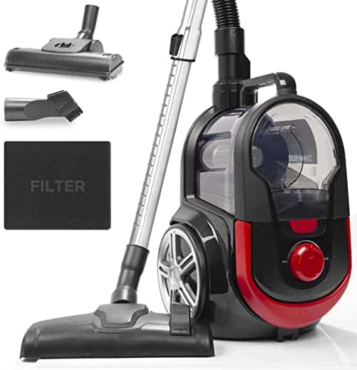 - BAGLESS WITH HEPA FILTER: Using cyclonic technology to separate the dust from the air, it is then filtered by the integrated HEPA filter to catch up to 99.97% of the particles ensuring that only filtered air is expelled back into the room. This is particularly useful for allergy sufferers who suffer when high levels of dust and other particles get expelled back into the air. The filter is washable and spares are also available to buy separately. There is an extra sponge filter included.