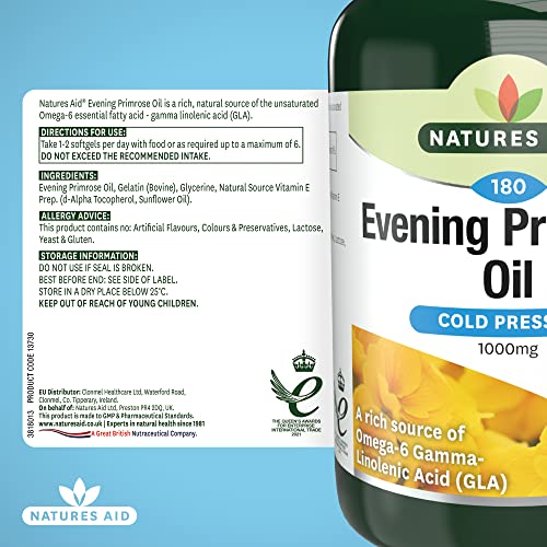Natures Aid Evening Primrose Oil 1000 mg, Cold Pressed, Omega-6 GLA, 180...