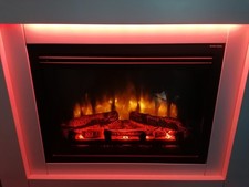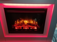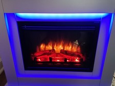 - Contemporary styled glass fronted electric fireplace suite with multicolour mood lighting