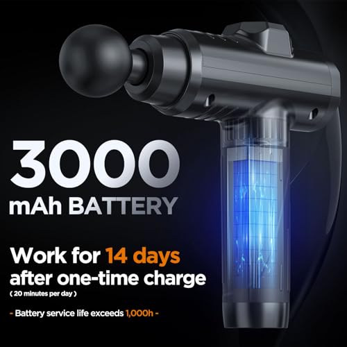 - Super-long duration and LCD touch screen: Touch buttons to adjust the massage speed and display accurate electric power and massage level in real time. The battery can continuously support 15 days of operation with 20 minutes per day. Our massager gun equipped with a and USB Type-C Charging, No worry about charging when you travel with it in different countries.