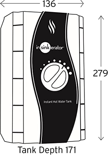 - TANK AND FILTER: The InSinkErator hot water tank has a capacity of 2.5 litres and measures 310 x 206 x 157 mm. The Hot Water Filter (F-701R) can filter out water impurities at temperatures up to 99 degrees C.