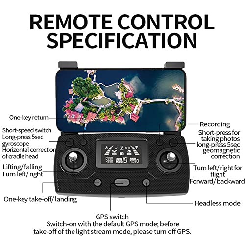 - [Intelligent Remote Control]: intelligent follow, automatically maintain a safe distance, the camera will follow the movement of the person and then turn. One-button take-off/landing, remote control distance of about 5 kilometers. Automatic around the point of flight, intelligent return system, in the case of low power, out of control can be recalled by one button. Real-time map, route planning, up to 16 waypoints. The APP displays real-time data such as remote control, flight altitude.