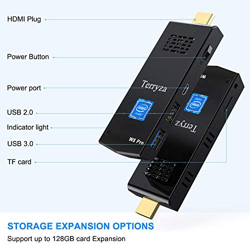 Specification: Mini PC Stick | 8 GB RAM / 128 GB ROM | Intel Atom Z8350, Windows 10 Pro Mini Desktop Computer, Support Dual WiFi 2.4+5G/ Bluetooth 4.2/ 4K HD