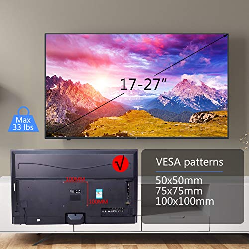 - UNIVERSAL TV WALL BRACKET - This TV wall mount holds most 17-27" Tvs up to 15kg, with max 100x100mm backside mounting holes. Compatible VESA holes:75x75mm/100x100mm. Please confirm the Vesa, Weight, size specification of your TV before purchasing.
