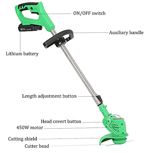 - *Rechargeable: Equipped with rechargeable 12V lithium battery, quick charge. Wireless electric grass trimer, eliminate the clutter caused by cables and cords. You can use it anywhere.