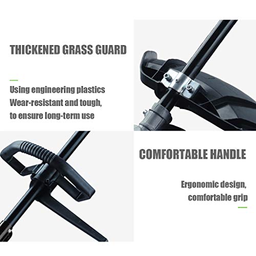 - 【Easy to use, new designed strimmer】: Ergonomic grip and adjustable auxiliary handle, more comfortable to use and more labor-saving. Widened grass guard board prevents the grass from splashing during mowing.