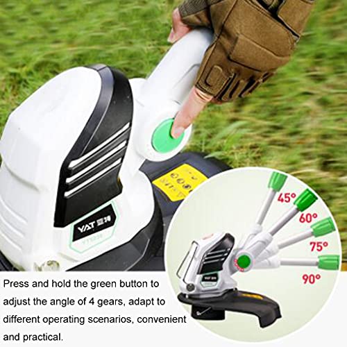 - Dual-Safety Control: The electric cordless weed wacker has a double switch hold down at the same time for dual-safety control and has a grass splash protection cover to prevent debris from splashing.