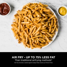 - 6 COOKING FUNCTIONS: Max Crisp, Air Fry, Roast, Bake, Reheat, Dehydrate. Cook from frozen to crispy. Up to 75% less fat* using the Air Fry function (*Tested against deep fried, hand-cut French fries).