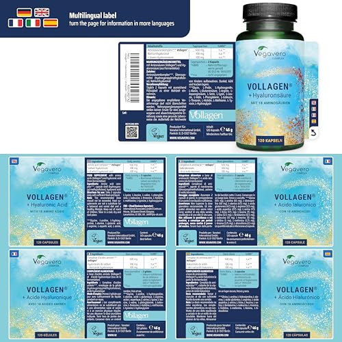 - WITHOUT ADDITIVES: In contrast to conventional collagen products (like collagen tablets, bovine collagen tablets and marine collagen peptides), our vegan complex is free from any additives such as microcrystalline cellulose or magnesium stearate. In addition, we have our product tested for various impurities on a regular basis. Suitable collagen supplements for women and men. Per bottle: 120 capsules. Recommended intake: 3 capsules per day.
