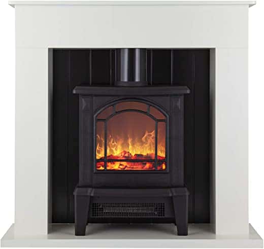 Warmlite WL45037W Ealing Black Electric Fireplace Suite White Surround RRP ยฃ299+