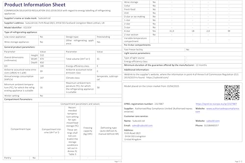 - BUY WITH CONFIDENCE – Full 1-Year Warranty is included for extra peace of mind. All Subcold products are tested to high standards and come complete with CE, ROHS and WEEE compliance.