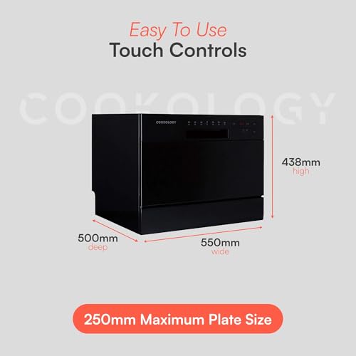 Cookology CTTD6BK Mini Counter top, Tabletop Dishwasher, 6 place settings (Black)