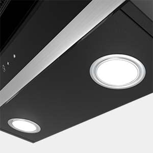 - MODERN DESIGN: The stylish extractor hood with black painting and tempered glass can effortlessly fit in with your kitchen's decorating style. With sensitive push buttons on the front, easy to operation.