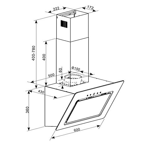 - 60cm EXTRACTOR HOOD: Suitable for using above a standard-sized hob, 2 pieces grease filters and pyramidal appearanc provide a large extraction area.