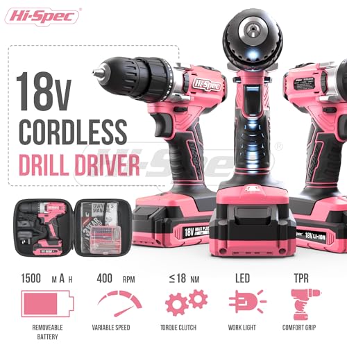 Hi-Spec 58 Piece 18V Pink Drill Driver & Multi Bit Set. DIY...