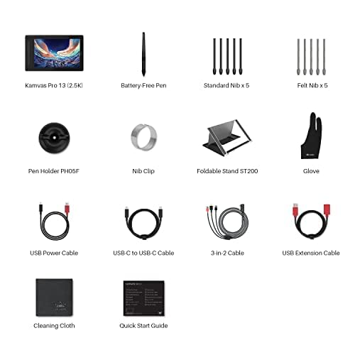 - Easy and quick connection: The creative graphics tablet with scream boast two USB ports, which support both 3-in-1 USB-C Cable(HDMI Signal)and Full-featured USB-C Cable(DP Signal,you can easily connect KAMVAS 13 with any devices that supports USB-C interface via a Full-featured USB-C Cable, which can be used for power supply, transmitting data and video signal. It is the best choice for beginners who want to try pen disply.(*full-featured Type-C cable requires purchased separately).