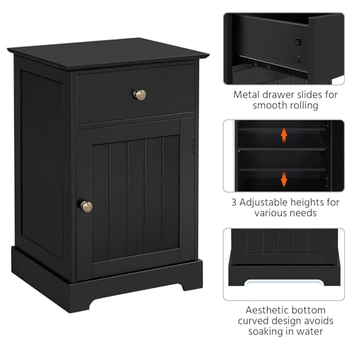 Yaheetech Black Bedside Cabinet with Cupboard & Drawer, Wooden Nightstand Accent Side...