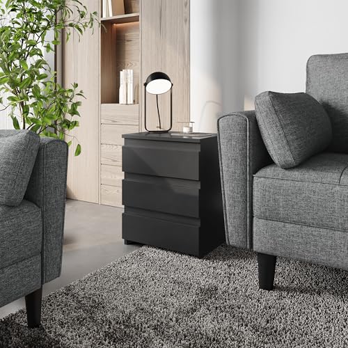 - Spacious: Our nightstand provides you with large capacity for sorting and storing small items, the table top measures 45x35cm(LxW), and each drawer measures . 36.5x28x8.5cm (LxWxH). The top of nightstand is big enough for placing items like photo frame, lamp or a cup of water/coffee. And the 3 drawers could get different items, i.e.: remotes, manicure kits, chap-stick, shaver, hair dryer, chargers etc well-organized.
