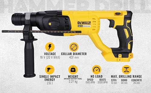 - UNMATCHED PERFORMANCE AND DURABILITY: The DEWALT 18V XR Brushless 24mm SDS-Plus Hammer Drill offers extreme runtime, reduced maintenance, and superior drilling performance, making it the perfect choice for professionals who need reliable and efficient tools.