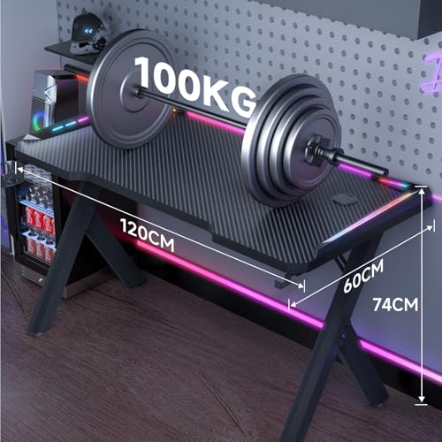 bigzzia Gaming Desk RGB Lighting Home Office Desk Ergonomic Gamer Workstation, Carbon...